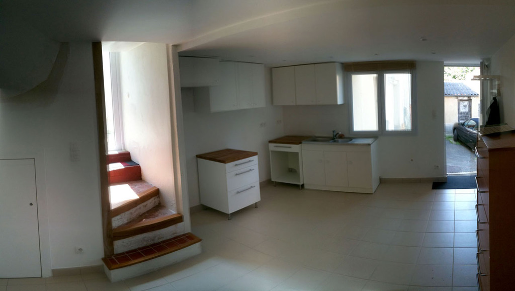 Une entrée sur pièce principale, cuisine aménagée, 1 chambre, 1 bureau, salle d'eau avec wc.